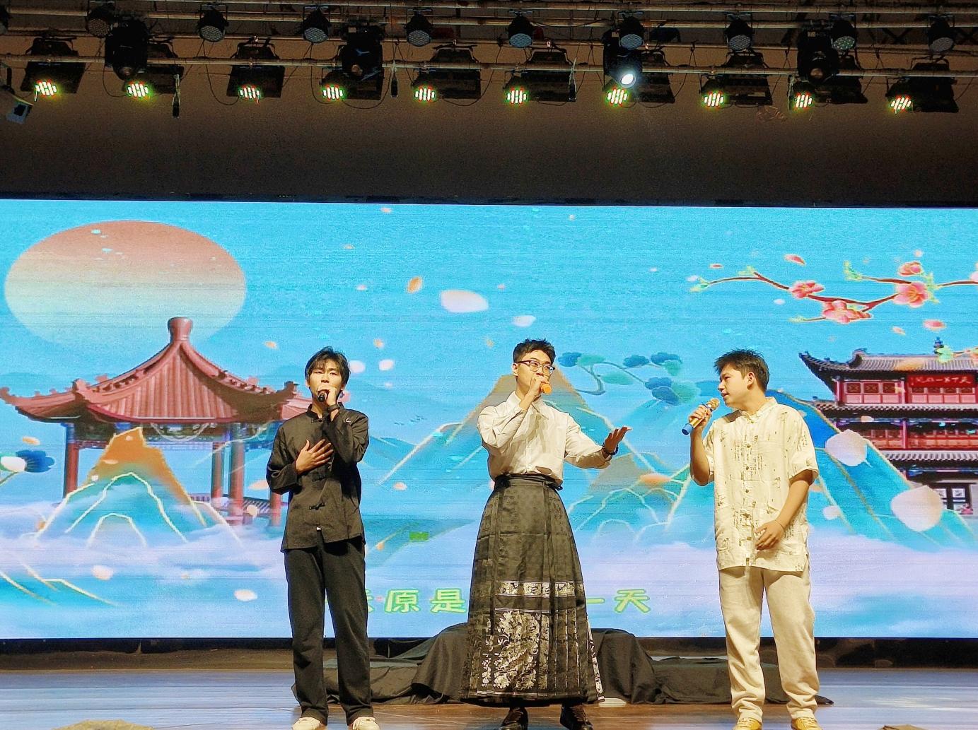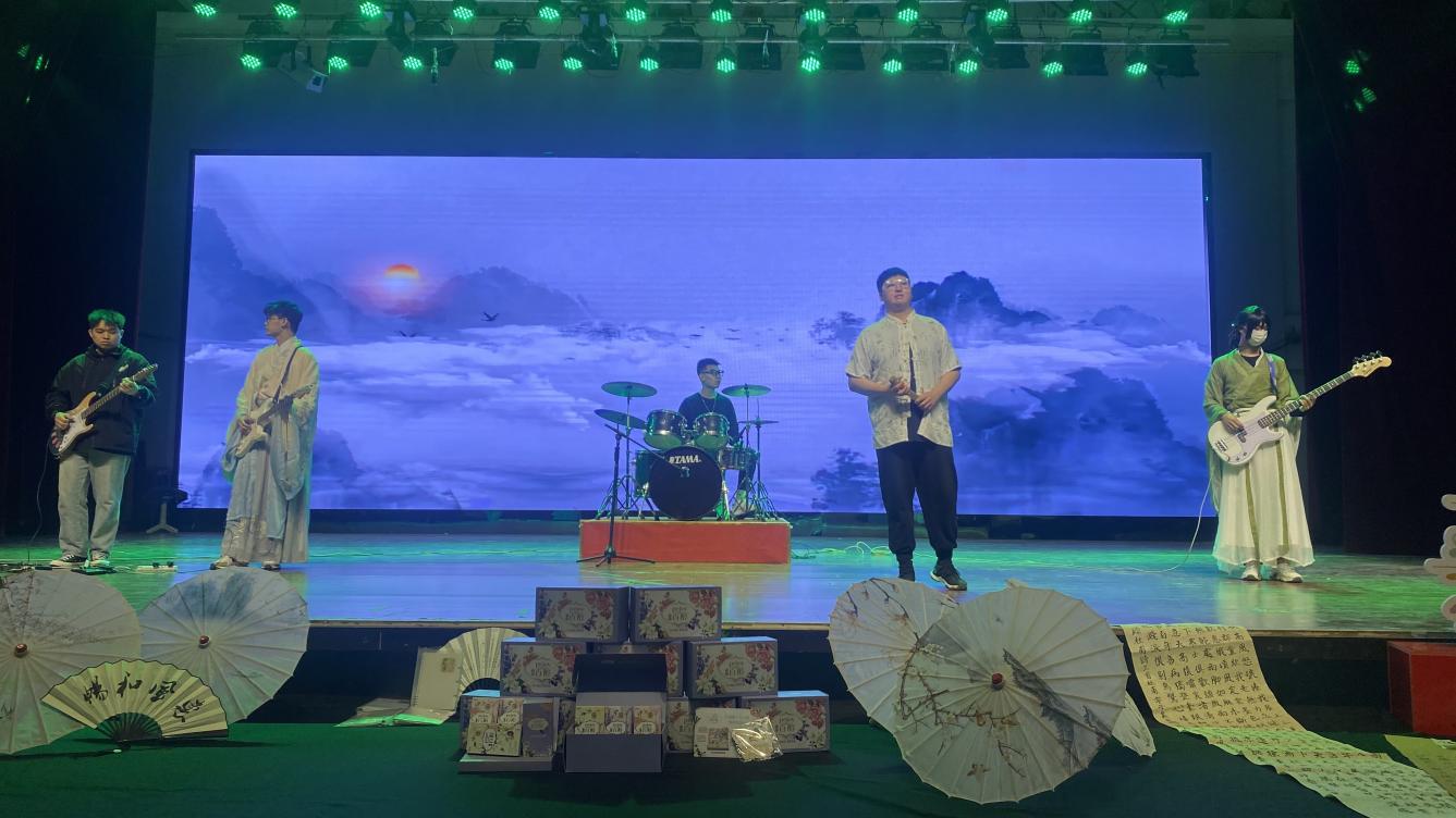 开幕式文艺展演在大学生乐团演奏的《西湖》中盛大开幕,健美操俱乐部的齐舞《霍元甲》;主持人协会的王嘉亿、李淯、谢云飞和马蕊等四名同学带来的诗朗诵《如果没有李白》;阳光青年志愿者协会侯香楠和郭瑞携手演唱的古风歌曲《凉凉》;中国舞协会的古典舞蹈《怎叹》;尚乐大学生合唱团崔益铭、刘子诚和杨沛达演绎的《上春山》;ioe街舞社的古风爵士舞《时候》;大学生乐团的民乐合奏《浮光》,中间穿插着古典游戏“飞花令”;翰墨书画苑的尹宏旭带来的书法展示……古韵悠扬的旋律、曼妙多彩的舞姿,既彰显了传统文化的持久生命力,也展现了当代大学生对传统文化传承的热情,给观众们留下了十分深刻的印象,赢得了现场久久不息的热烈掌声。
