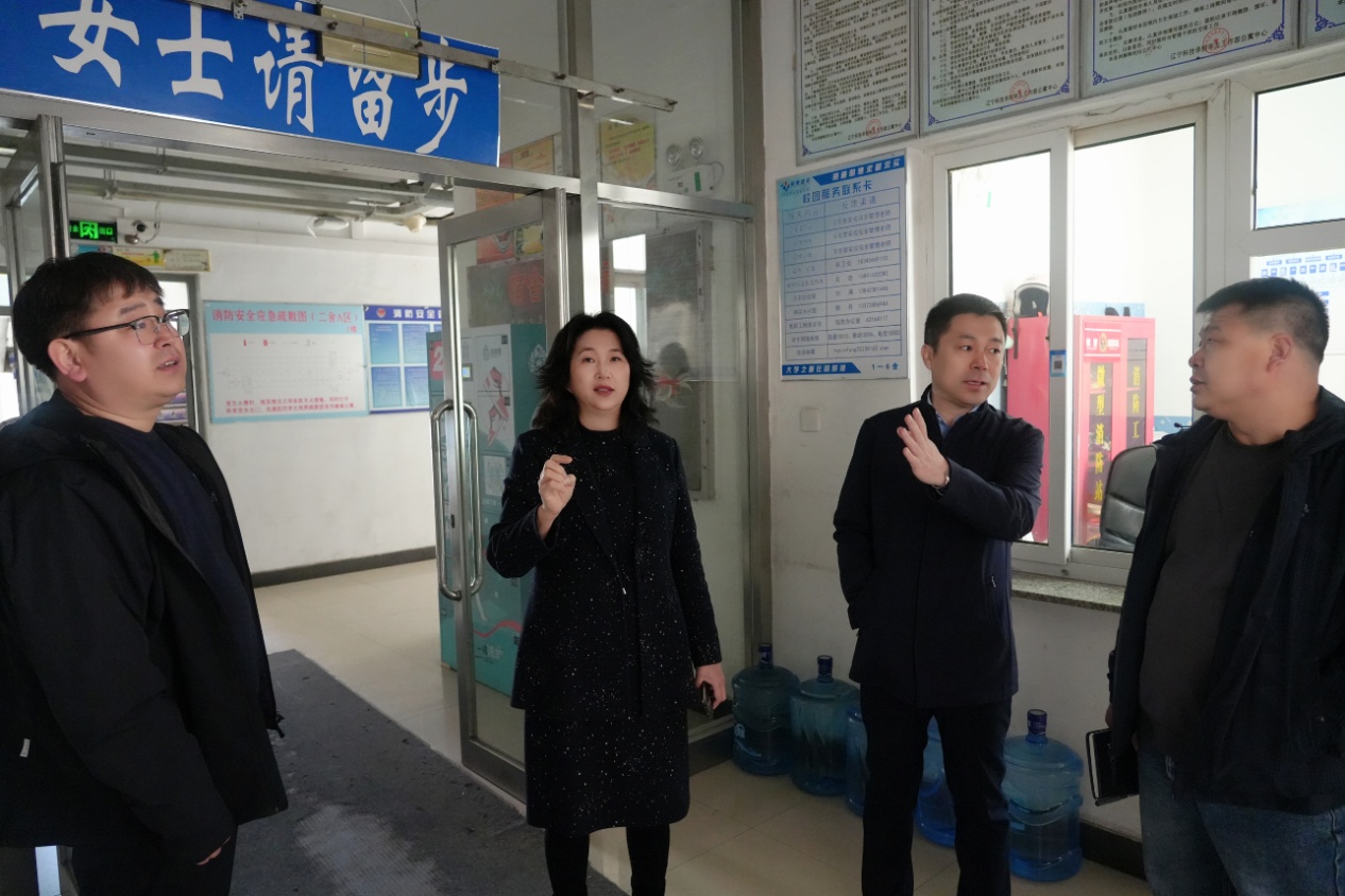 在学生公寓,赵毅重点对公寓的消防安全、环境卫生、公共设施等方面进行全面检查。赵毅强调,要坚持“以生为本、教育主导、严格管理、全面服务”的原则,时刻把学生安全健康和校园安全稳定放在首要位置,以最严格的标准扎实推进学生公寓建设工作,一是要将公寓管理与公寓文化建设紧密结合起来,用心用情服务学生,做细做实文化氛围营造,充分发挥寝室阵地育人作用;二是要树立“学生事、无小事”的理念,确保学生公寓服务安全便捷、应急设施完备、住宿温馨舒适,为学生提供良好居住生活空间;要统筹做好公寓后勤保障、环境改造、安全管理等工作,为学生打造整洁卫生的“家”环境,护航学生成长成才。