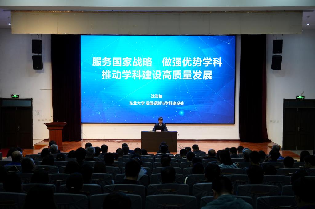 报告中,沈岩柏教授围绕东北大学概况、学科建设工作以及近期重点工作等三个方面进行了阐述。他以东北大学的历史沿革为切入点,讲述了东北大学坚持以育人兴邦为使命,创办行业特色、争创建设一流的百年建校史。他指出,东北大学始终坚持优化布局,做强优势学科、培育一流学科,实施三大工程和四大引领计划,建设了多门国家“双一流”学科和辽宁省优势特色学科群。沈岩柏教授在谈到东北大学近期重点工作时阐述到,东北大学将加快推进学科质量跃升工程建设、推进学科专业布局优化调整,进一步加强东北大学双一流建设项目全流程管理,进一步健全以学术委员会为核心的学术管理体系,确保学术管理工作的科学性、规范性、有效性和高效性。