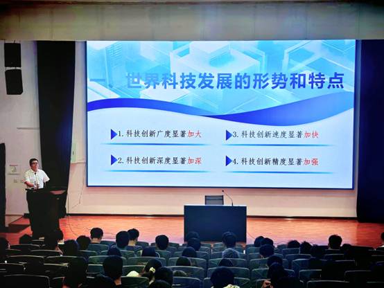 李卫民从世界科技竞争日趋激烈、我国科技机遇挑战共存、加快科技自立自强步伐等三个方面进行讲授。讲授中结合大量实际视频案例,深刻阐述了当今百年变局之下,科技创新是“关键变量”,也是高质量发展的“最大增量”。立足新发展阶段、贯彻新发展理念、构建新发展格局、推动高质量发展,必须深入实施科教兴国战略、人才强国战略、创新驱动发展战略,完善国家创新体系,加快建设科技强国,实现高水平科技自立自强。