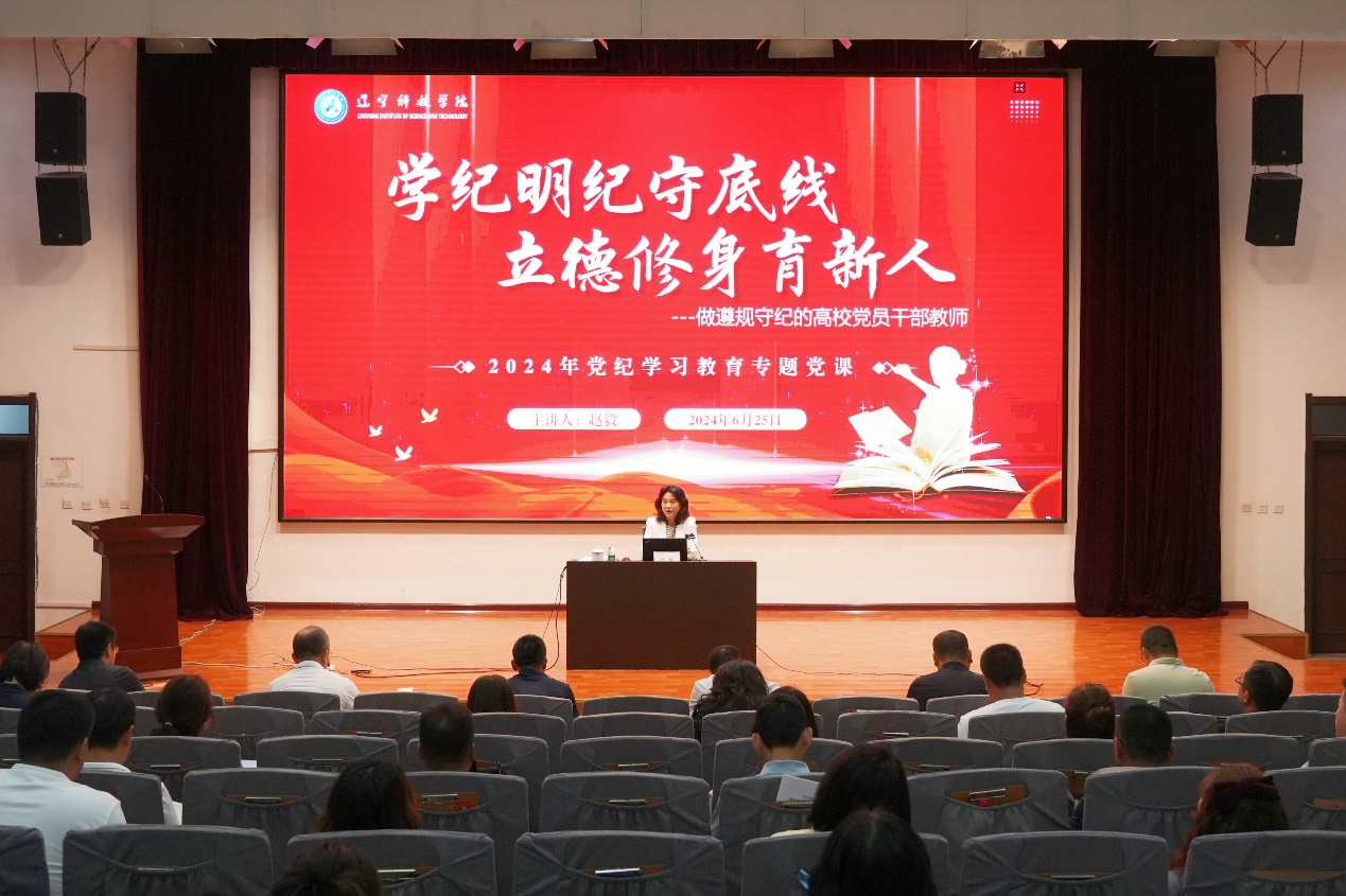 根据学校党纪学习教育总体安排,6月25日下午,校党委书记赵毅以《学纪明纪守底线立德修身育新人---做遵规守纪的高校党员干部教师》为题,为新提拔干部、年轻干部、重点领域和关键岗位干部讲授党纪学习教育专题党课。