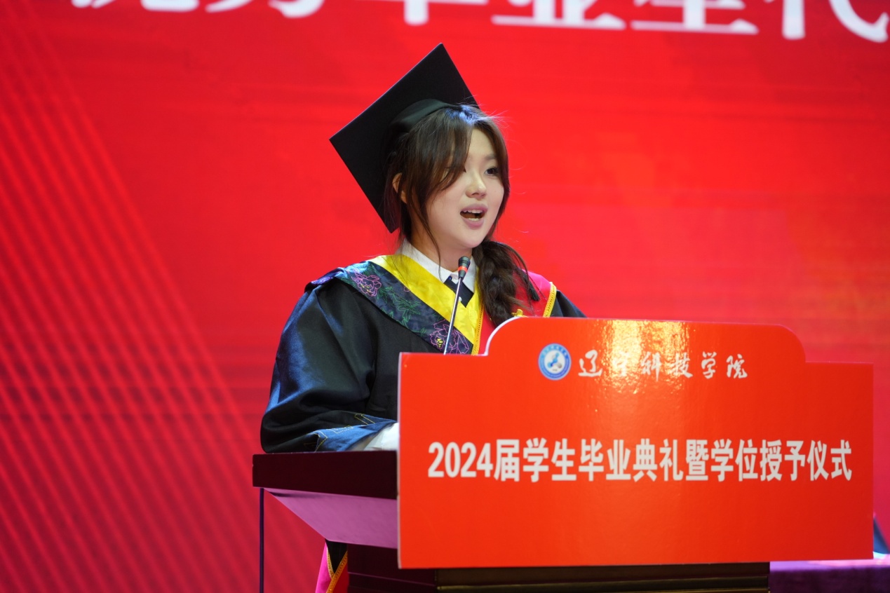 辽宁省大学生年度人物提名奖、省优秀毕业生柴林睿恒同学代表2024届毕业生发表毕业感言。
