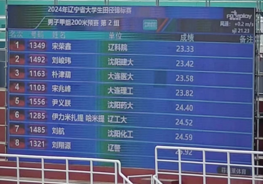 在7月24日上午进行的共有23所学校参加的男子甲组200米预赛中,来自资源与土木工程学院的宋荣鑫发挥出色,以23.33秒的成绩,排名预赛第1名,顺利进入半决赛,并荣获国家二级运动员证书,再次刷新了我校200米纪录。