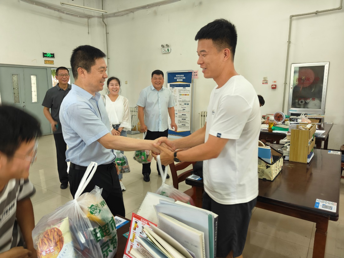 盛夏炎炎,爱心满满。为切实做好暑期留校学生安全教育管理工作,深入了解暑期留校学生的思想、学习和生活状况,为留校学生送去学校的关心和关爱,7月31日,副校长葛会奇带领学生工作处工作人员、各学院学生工作书记(副书记)和辅导员,前往图书馆和学生公寓等场所,走访慰问暑期留校复习考研、考公、参加竞赛的学生,了解留校学生学习生活情况,并给全体留校学生送去了饮料、面包、小食品等慰问品。