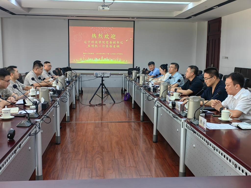 宋明凯围绕学校“一主两翼三业融合”的办学模式,重点介绍了学校在建设区域高水平应用型大学过程中凝结的办学思路及办学成就。宋明凯指出,作为具有钢铁行业背景的院校,辽宁科技学院在长期服务钢铁行业发展过程中,将“钢筋铁骨”育人精神融入人才培养的各个环节,为实现校企之间的资源互通和优势互补,培养新时代“钢小伙”“铁姑娘”提供坚强思想保证、注入强大精神动力。宋明凯表示,“校企一家亲”,凌源钢铁与辽宁科技学院有着共同的价值理念,深厚的钢铁情怀,此次一行既是思想情感上的再次深入交流,更是对未来校企合作的美好展望。希望校企双方进一步加深交流,积极构建校企合作新模式,持续培养高素质应用型人才,持续提供优质就业岗位,依托企业与学校共同进行科学研究,以实际行动为教育、科技、人才支撑中国式现代化建设贡献力量,为教育强国建设、促进新质生产力发展、辽宁全面振兴新突破三年行动作出积极贡献。