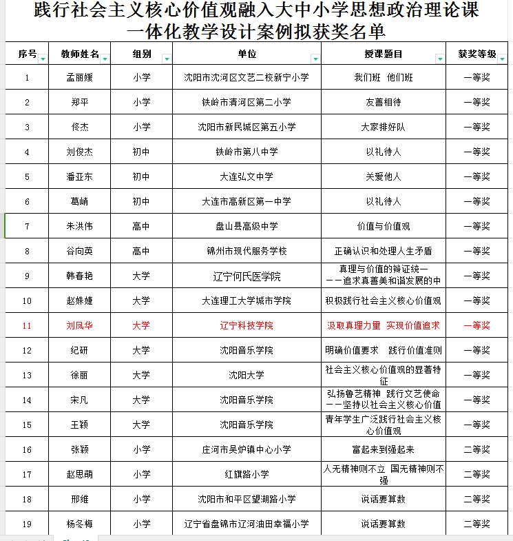 为深入学习贯彻习近平总书记在学校思想政治理论课教师座谈会上的重要讲话精神,扎实推进我省大中小学思政课一体化建设工作,今年2月辽宁省高校思想政治理论教育研究会面向全省学校思政课教师开展了“大中小学思政课一体化建设”专题教学设计案例征集活动。在一千余份的参赛作品中,我校马克思主义学院刘凤华老师的教学设计案例《汲取真理力量 实现价值追求》荣获一等奖。