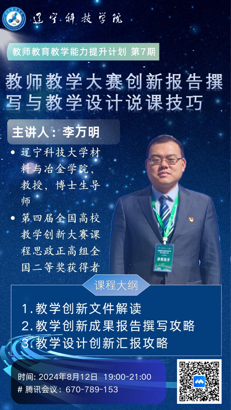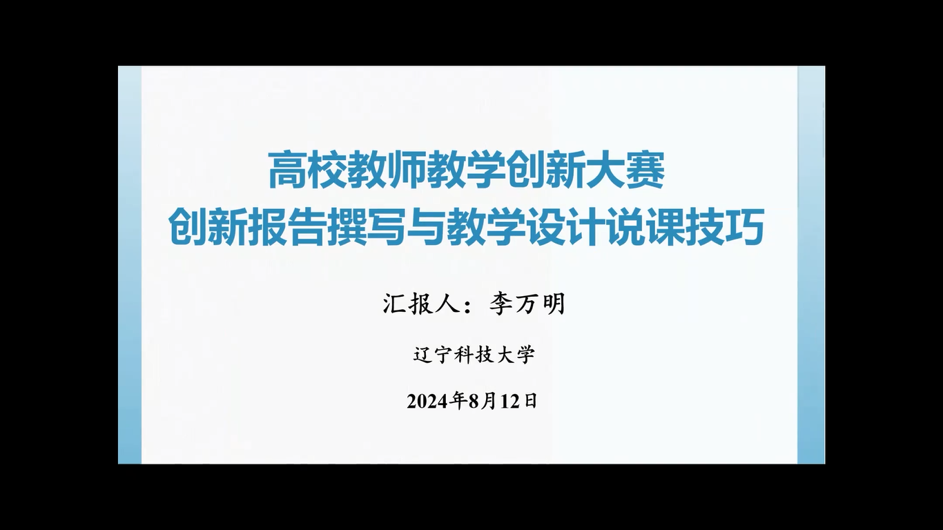 学校教务处邀请辽宁科技大学材料与冶金学院李万明教授,以“教师教学大赛创新报告撰写与教学设计说课技巧”为题作专题培训。本次培训得到广大教师的积极参与,共有215名教师报名参加培训,其中青年教师160余名,占总参加教师人数的70%以上。