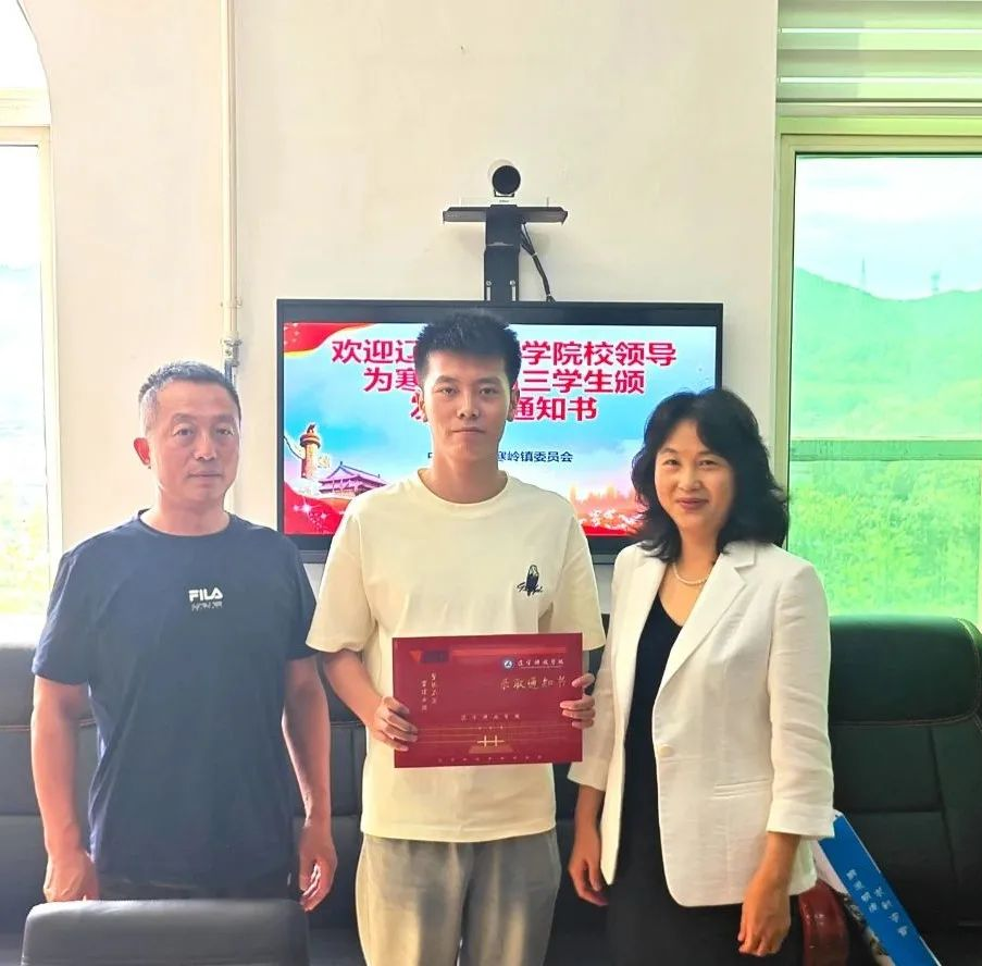 图为 辽宁科技学院副校长葛会奇为鞍山级籍学生颁发录取通知书