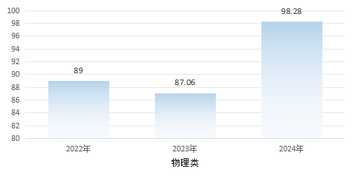 图为 近三年辽宁省物理类(不含中外合作办学专业)专业平均分线差