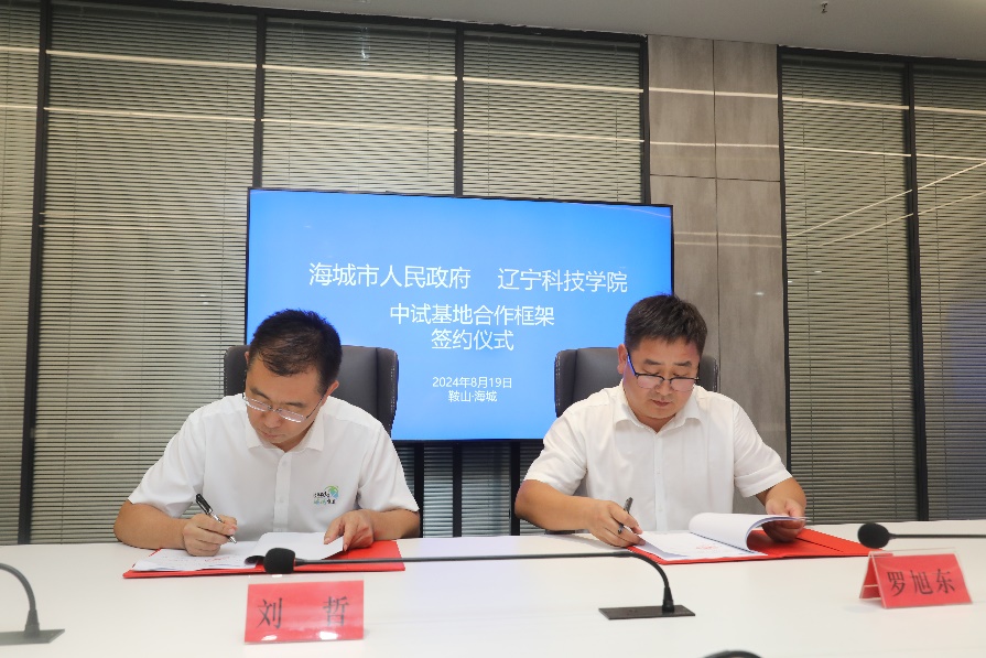 日前,辽宁科技学院与海城市人民政府举行中试基地合作框架签约仪式。海城市委常委、副市长刘哲,辽宁科技学院副校长罗旭东及学校科技处、冶金学院相关负责人,海城市工信局、市发改局相关负责人和相关企业代表等参加仪式。