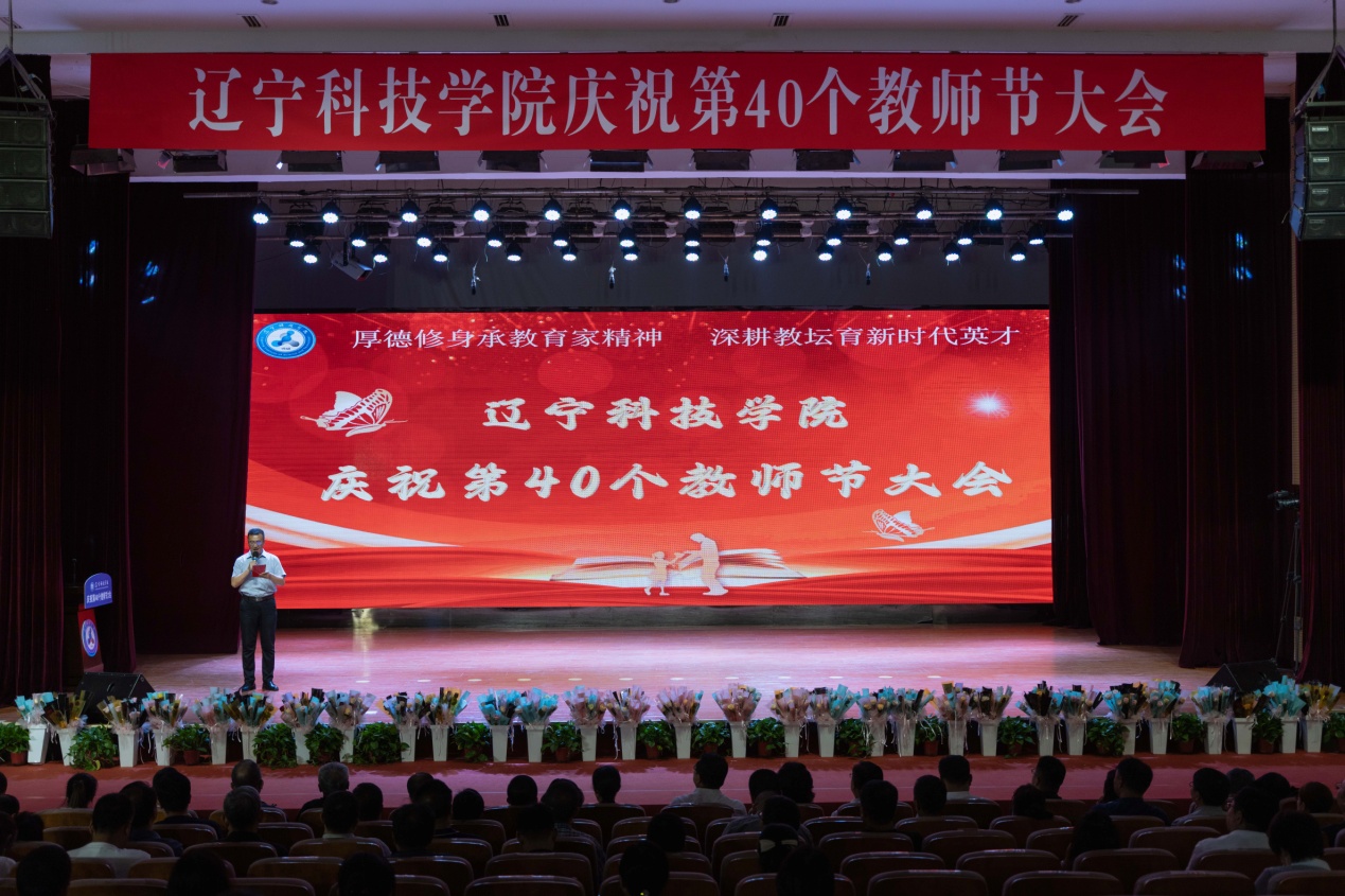 秋菊溢彩又一载,最是桃李满园香。今年是新中国成立75周年,正逢第40个教师节。9月10日下午,辽宁科技学院2024年教师节庆祝大会于大学生活动中心举行。校领导班子,相关职能部门和各学院负责人,教职工代表齐聚一堂,共同庆祝。党委副书记宋明凯主持大会。
