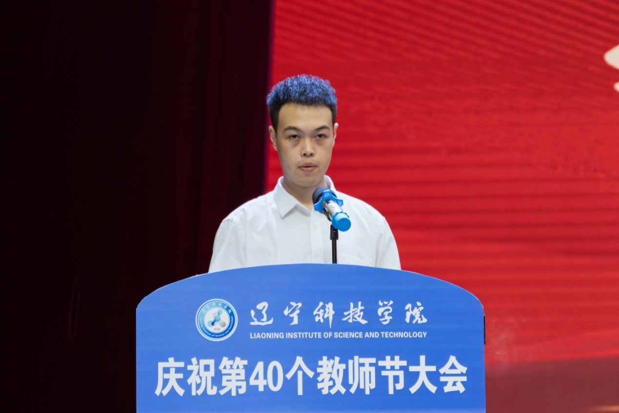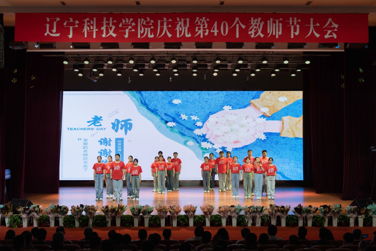 机械工程学院学生佟昊霖代表全体辽科学子为老师们送上教师节的祝福。来自全国各地的校友向母校与恩师献上诚挚的感激和祝福,传递出浓浓的辽科师生情,用欢笑和幽默诠释对学校的美好祝愿。会上,王海波老师带领新入职教师宣誓,并举行新老教师接力棒仪式,相信辽科精神必将薪火相传、延绵不息。庆祝大会上,师生共演精彩节目,讴歌辽科教师行耕不辍、辛勤耕耘的感人画面,展现辽科教师以校为家、无私奉献的生动事迹。