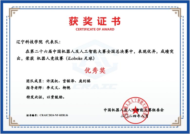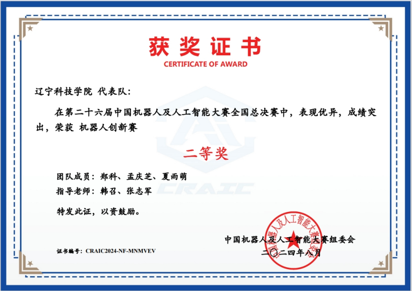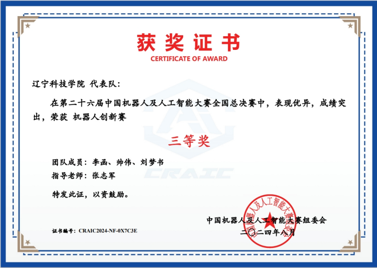 8月末,第二十六届中国机器人及人工智能大赛全国决赛圆满结束。我校选手经过积极备战,在总决赛中成绩优异,斩获国赛一等奖1项,国赛二等奖1项,国赛三等奖1项,国赛优秀奖1项。