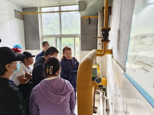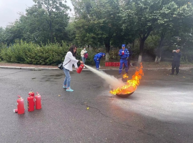理论培训结束后,王慧祥带领参训人员在勤公楼后侧停车场进行了干粉灭火器的实际操作演练。随后,全体人员到沁嘉园餐饮中心聆听王平伟现场讲解厨房燃气泄漏后的正确处置流程及注意事项。