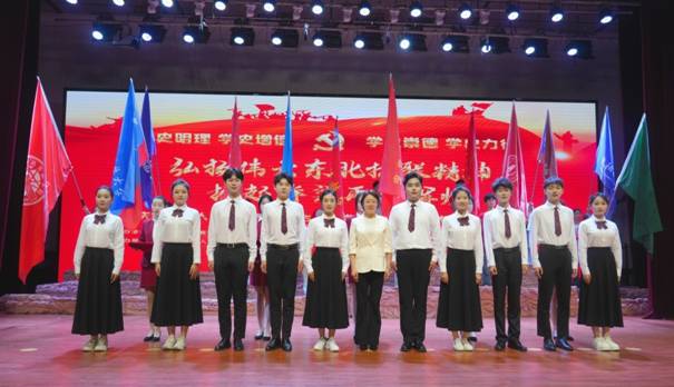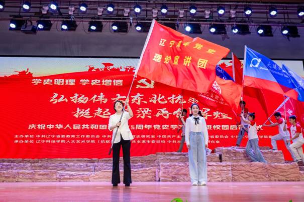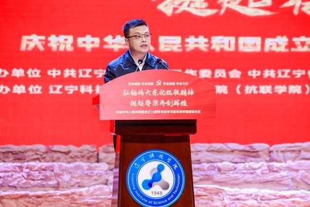 赵毅在主持中指出,党史学习教育进校园启动仪式暨“弘扬伟大东北抗联精神,挺起脊梁再创辉煌——庆祝中华人民共和国成立75周年”辽宁青年党史理论宣讲团首场展演意义深远,既是落实《党史学习教育工作条例》有关要求的创新举措,也是认真贯彻落实习近平总书记在全国教育大会上的重要讲话精神的具体行动,更是深入学习贯彻党的二十届三中全会精神的生动实践。近年来,辽宁科技学院立足辽宁红色“六地”文化,秉持“传承红色基因、服务强国建设、淬炼钢铁意志”,以中华优秀传统文化、革命文化和社会主义先进文化为力量根基,推动思政课程与课程思政同频共振。学校把“用东北抗联精神铸魂育人”作为传承红色文化、开展党史学习教育的重要切入点和着力点,持续且深入地挖掘红色文化资源承载的育人功能,实现德育、智育、美育的有机结合,推进红色文化入脑入心。与此同时,学校在长期服务钢铁工业发展的过程中,把钢铁精神融入学生成长成才,将培养具有“钢铁品质”的、职业素质好、动手能力强的“下得去、用得上、留得住、离不开”的高素质应用型人才作为关键目标,贯穿人才培养始终,一批批矢志钢铁报国的有为青年投身社会主义的火热建设中,成为中华民族伟大复兴之路上的钢铁脊梁。
