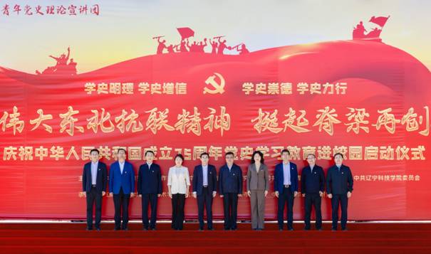 在庆祝中华人民共和国成立75周年之际,9月26日,党史学习教育进校园启动仪式暨辽宁青年党史理论宣讲团首场展演活动在辽宁科技学院举行。本溪市委书记吴澜出席启动仪式并致辞。省委党史研究室主任宿建军出席启动仪式并讲话。团省委书记张鹏出席启动仪式并为辽宁青年党史理论宣讲团成员授旗。辽宁科技学院党委书记赵毅主持启动仪式。省委教育工委副书记李显通,省直机关工委一级巡视员闫成孝,省委党史研究室副主任王建立,省委党史研究室副主任刘志刚,本溪市委常委、秘书长王旭征,辽宁科技学院党委副书记宋明凯,辽宁科技学院副校长罗旭东,辽宁科技学院副校长闫海军出席活动。