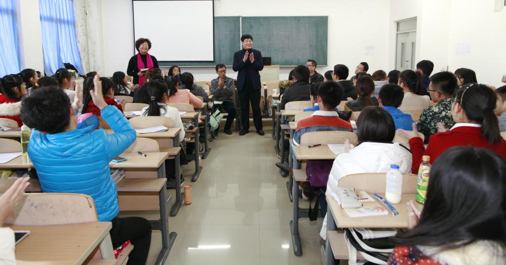 在课堂上,赵书记用自己的人生体悟旁征博引、说古论今,与大学生共同探讨“大学生应当怎样爱国”话题,特别是针对汉语言专业同学提出的如何学习汉语言专业与传承中华民族优秀传统文化的关系上,淋漓尽致地把中华民族从强大——受欺侮——必将走向强盛的发展逻辑关系用事实与证据论证清晰,把爱国与大学生的关系入情入理地娓娓道来。
