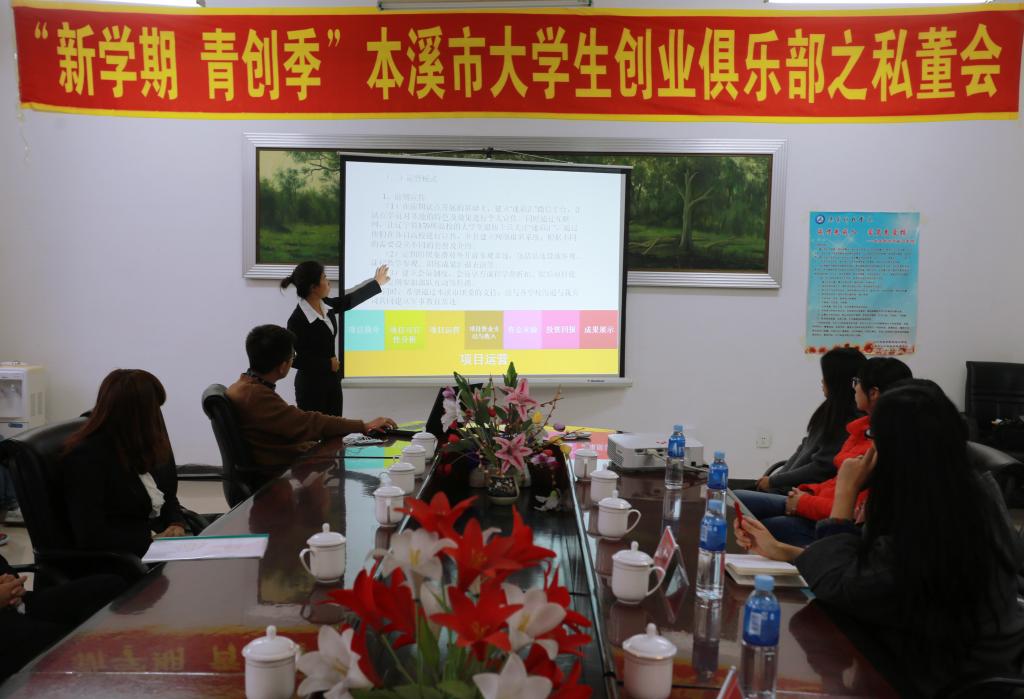 大众创业,万众创新,为加强学生对创业的认识,提高学生创业水平,引导学生正确创业,由共青团本溪市委员会主办、共青团辽宁科技学院委员会承办的首场本溪大学生创业俱乐部之私董会于2015年10月21日下午在艺术楼201教室成功举办。本溪市优秀创业项目智能家居养老信息服务平台的创始人刘源、“北大才女”自有手艺项目负责人杨鲁宁担任本次私董会的点评嘉宾。