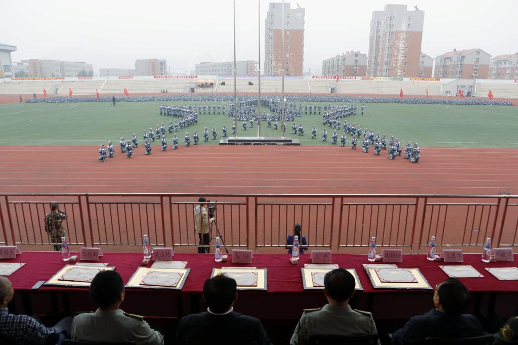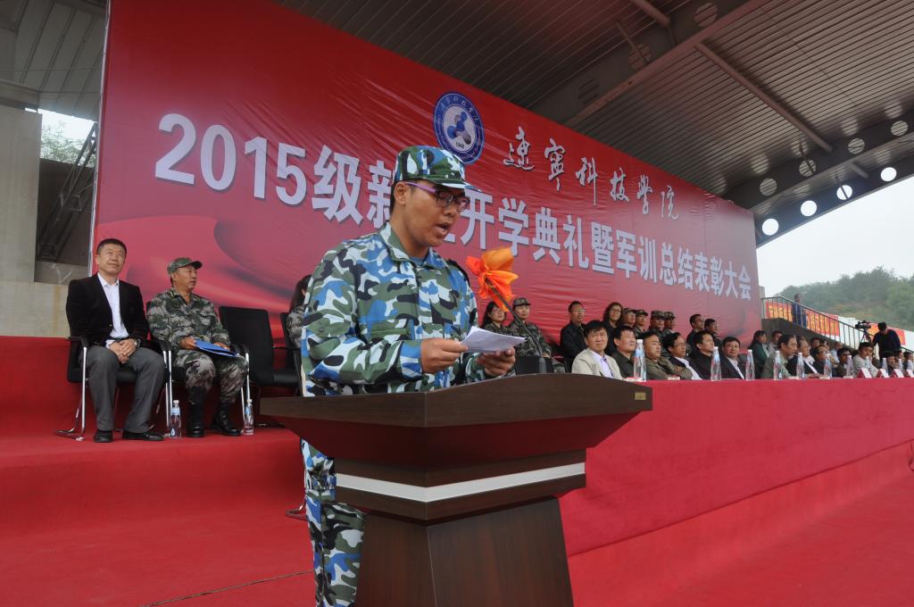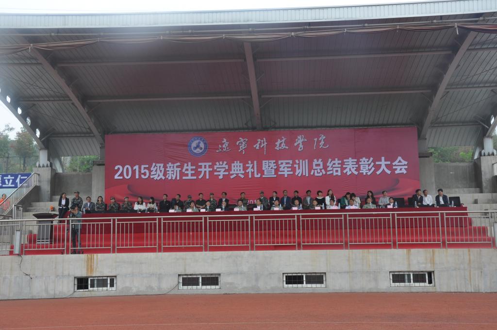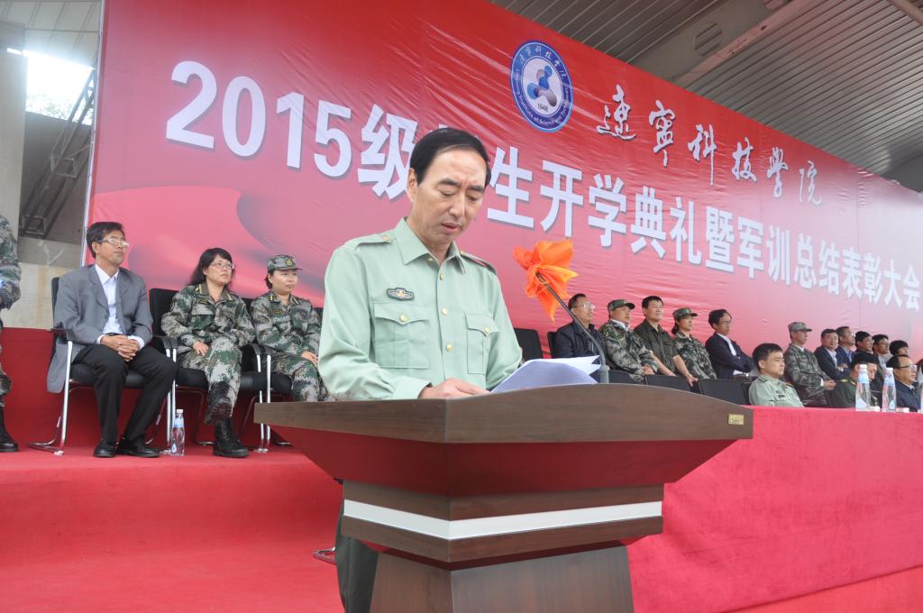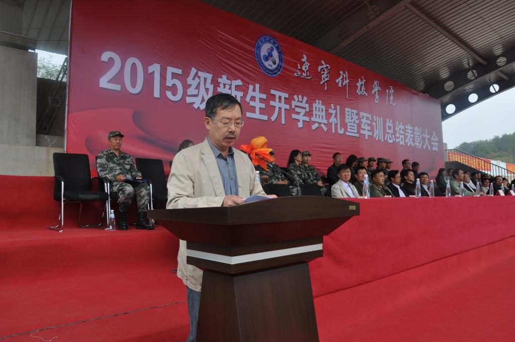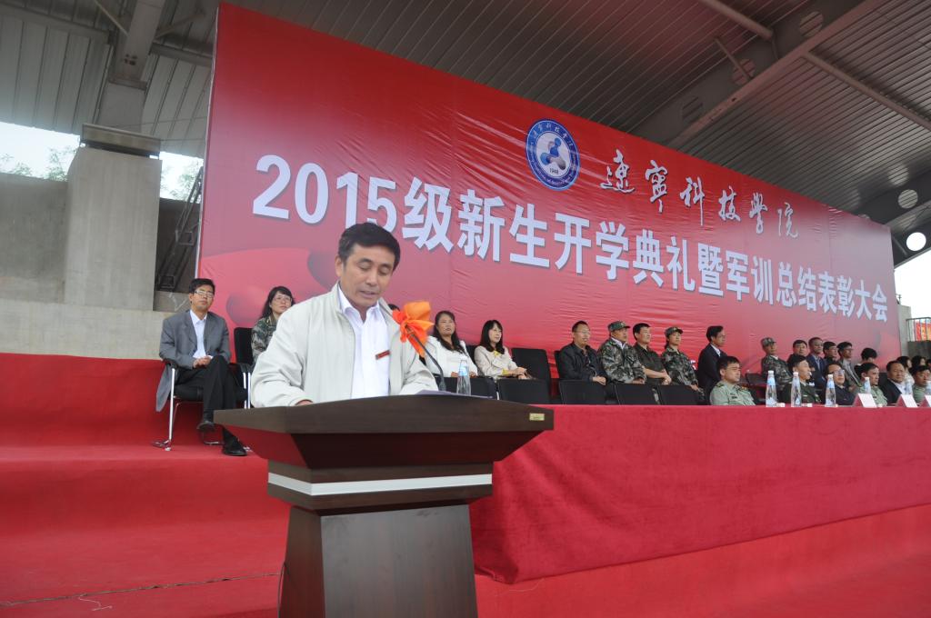 9月25日上午,金秋送爽,丹桂飘香,我校2015级新生开学典礼暨军训总结表彰大会隆重举行。校长马壮,党委副书记韩劲松,副校长吴国玺、丛树林,纪委书记邓献宇,预备役192师政委侯占纯大校,本溪军分区参谋长苏严大校,辽宁省教育厅体育与卫生艺术处王秋鹏处长,武警本溪支队政委王思华上校,65559部队政治部副主任康福生中校,本溪高新技术产业开发区管委会副主任、公安分局局长刘汉志,溪湖区人武部副部长赵其荣中校及相关职能部门、各院系负责人,新生班主任、全体辅导员和全体教官和本溪电视台、本溪日报社等媒体朋友们出席了大会。大会由学生工作处处长钱春焱主持,2921名新生整齐着装,气宇轩昂,用出色的表现为16天的军训划上圆满句号,完成了大学第一课。