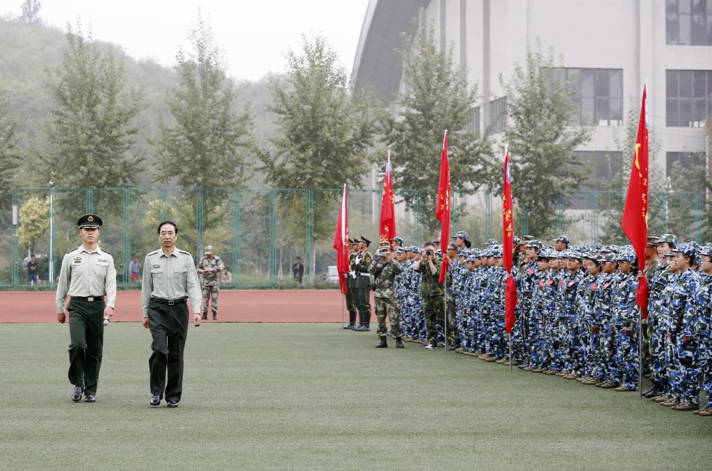 图为纪委书记邓献宇检阅受训学生