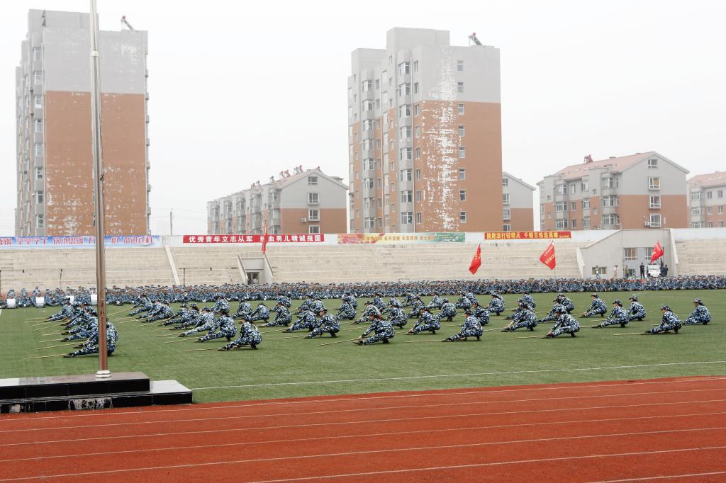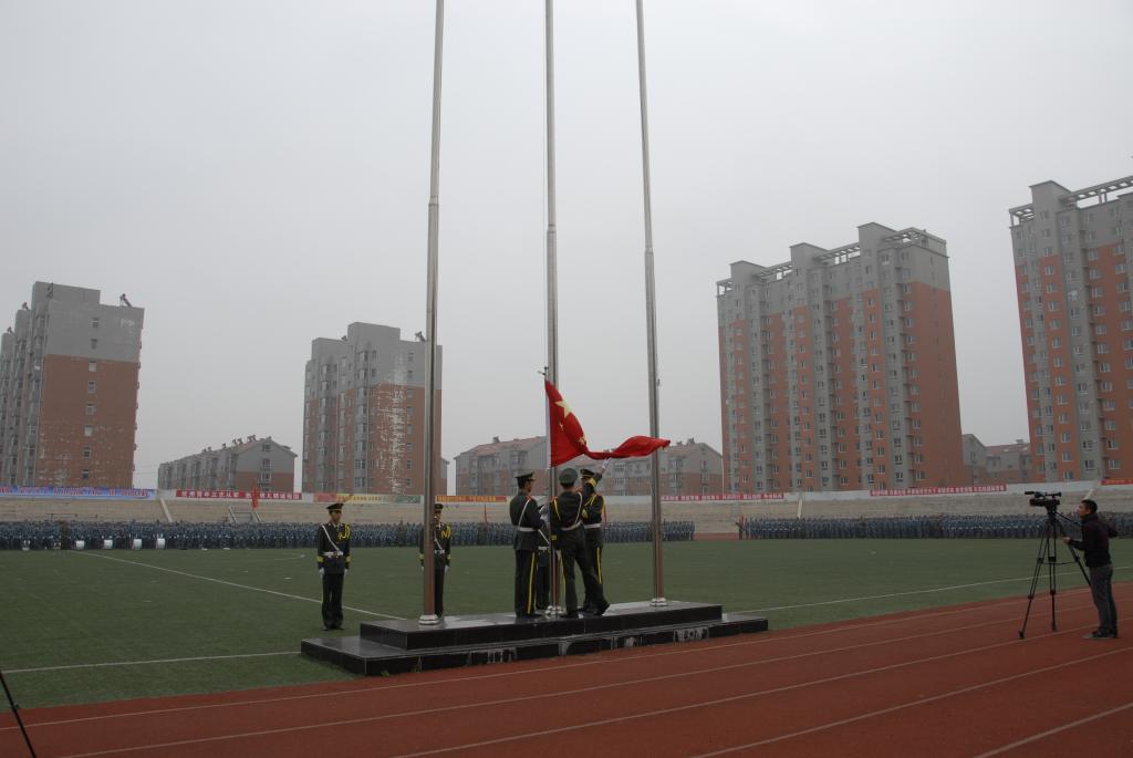 国旗护卫队步入旗台,鲜红的五星红旗冉冉升起在田径场上空,开学典礼暨军训总结表彰大会在雄壮的国歌声中拉开帷幕。