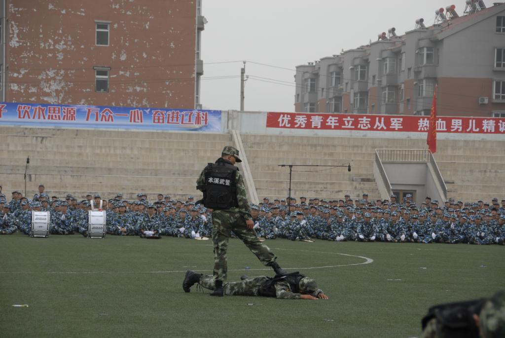分列式后,勇猛的男子擒敌拳、敏捷的女子防身术等军训特色科目表演拉开了军训总结表彰大会的序幕,集中展示了军训的训练成果。生气蓬勃的2015级新生以昂扬向上、奋力拼搏的精神面貌向老师、同学汇报表演,挺拔的军姿、饱满的精神、坚强的斗志、矫健的动作赢得了现场阵阵喝彩和掌声。女子防身术、花式队列表演展现我校女生柔中带刚的别样风采,男生组成的擒敌方阵、棍术表演展示了豪迈阳刚之气,也体现了本次军训的丰硕成果。最后,全体教官表演擒敌格斗,他们身手敏捷,显示出当代军人铮铮铁骨的风采。参训学生集体演唱了《辽宁科技学院校歌》、《歌唱祖国》等一系列校歌军歌表演,增进了青年学生的爱校情怀,营造健康、和谐、昂扬的校园文化氛围。