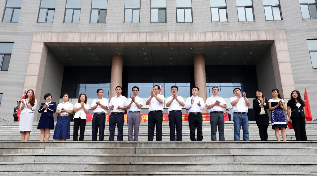 “我志愿加入中国共产党,拥护党的纲领,遵守党的章程......”庄严的入党誓词久久激荡在清晨的辽科校园中。9月2日早上7点,由党委宣传部、学生工作处、校团委共同举办的“重温入党誓词,践行青春诺言------辽宁科技学院纪念中国人民抗日战争暨世界反法西斯战争胜利70周年活动”在书韵广场成功举行。校长马壮、副校长丛树林、党政办公室主任刘占文、学生工作处处长钱春彦、宣传统战部副部长宋万刚、校团委书记韩娇、各院系学生工作书记、副书记及分团委书记、全体学生党员、优秀学生干部,共计300余人参加此次活动。