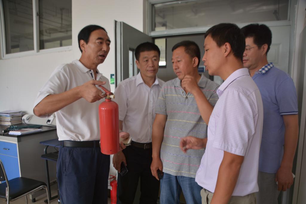 图为纪委书记邓献宇检查实验室灭火器安置情况