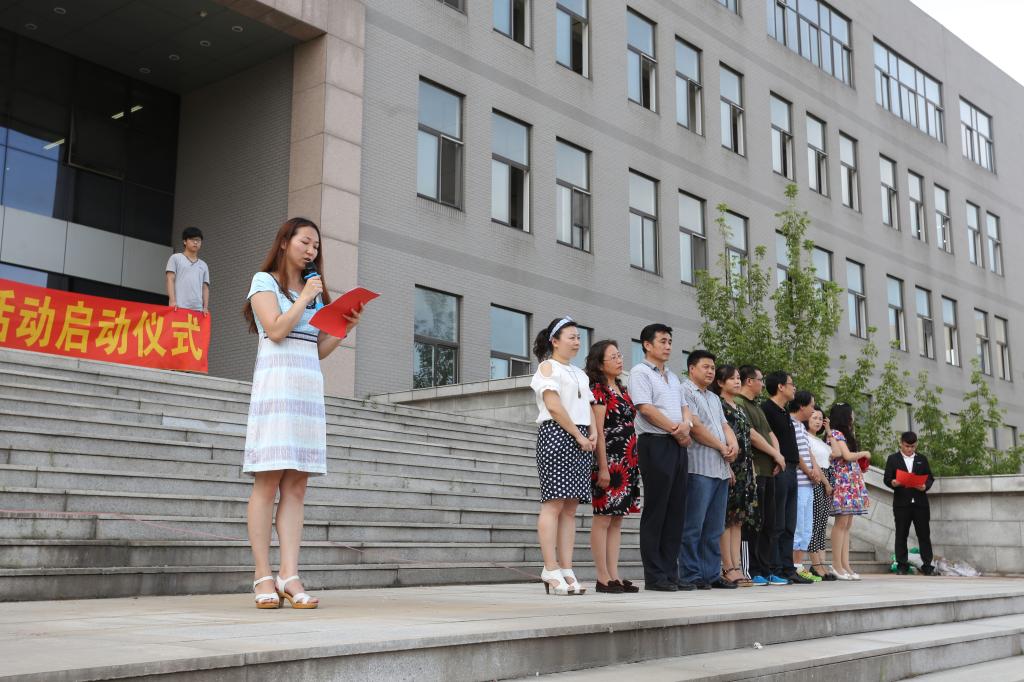 七月是青春的画卷,朝霞瑰丽,我们群情激昂书写浩然正气;七月是希望的世界,绿海壮阔,我们践行真知开启梦想殿堂。7月15日下午3时30分,我校2015年暑期社会实践活动启动仪式于书韵广场举行,我校副校长丛树林教授,校团委书记韩娇,校团委副书记管霞,以及各二级学院学生工作书记、副书记,分团委书记,学生代表200余人参加了本次活动。