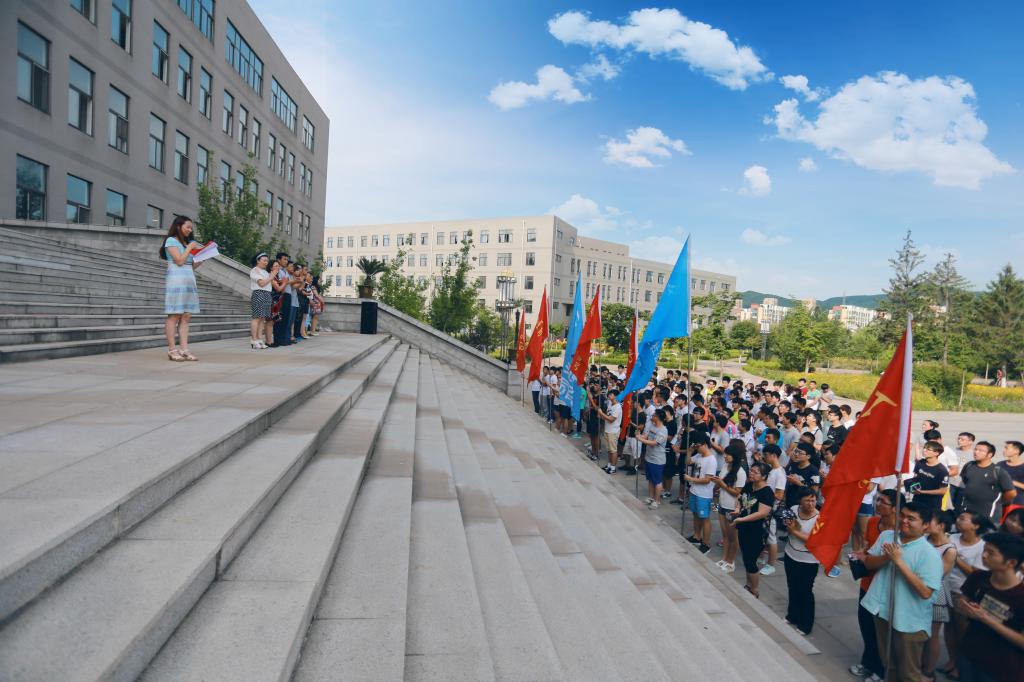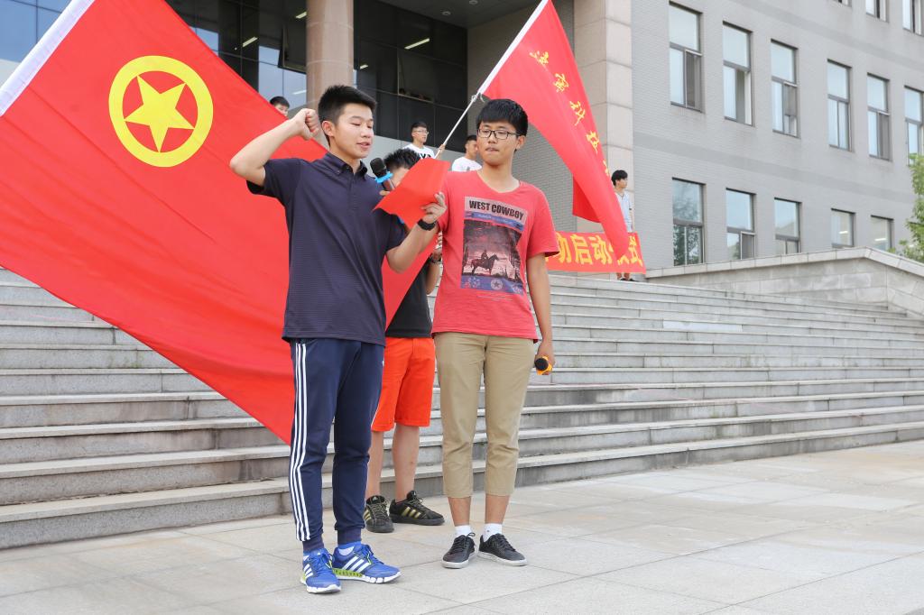 在激昂的共青团团歌中,启动仪式拉开帷幕。首先,机械学院学生代表闵锐同学在庄严的团旗下领誓,表达了全校同学对本次社会实践活动的信心和决心。随后,校团委书记韩娇讲话。韩娇书记介绍了我校本次社会实践活动的各团队的基本情况,并提到我校广泛发动辽科学子走出校园、走向社会,深入开展实践活动,鼓励同学们在实践中受教育、长才干、做贡献。希望辽科学子能够习总书记铭记“勤学、修德、明辨、笃实”八字箴言,将服务社会与专业特长相结合,在实践中坚持脚踏实地、勇于突破自我,用青春臂膀担起时代的责任,践行社会主义核心价值观,弘扬“明道明德,求新求实”的辽科精神,铸造百炼成钢之英才,培养具有创新精神的应用型高级人才。此外,他特别叮嘱,学校师生一定要牢固树立“安全第一”的意识,严格遵守团队纪律,注意规避安全隐患,以确保实践活动安全顺利开展。