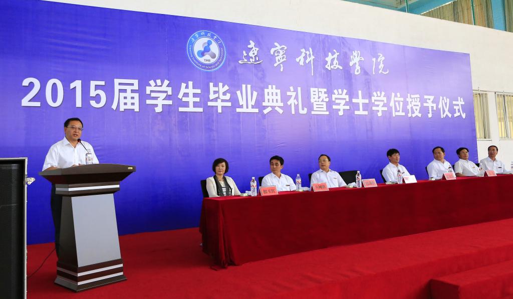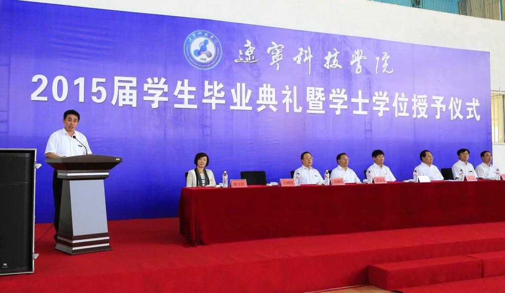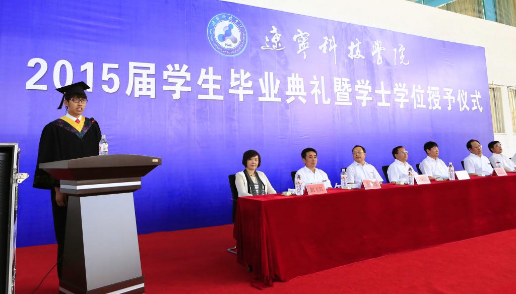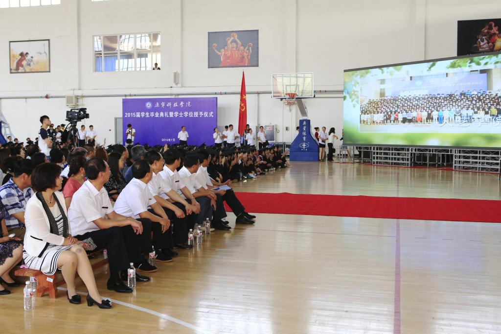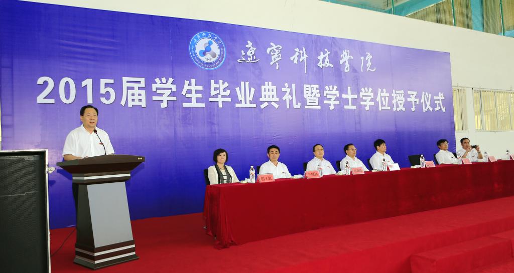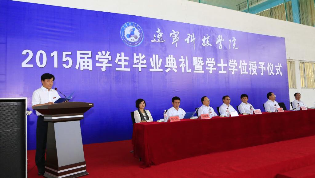 毕业是一首生动的离别歌,更是成长路上的里程碑。7月6日,辽宁科技学院2015届学生毕业典礼暨学士学位授予仪式在体育馆隆重举行。党委书记、博士生导师赵文珍,校长、博士生导师马壮,党委副书记韩劲松,副校长吴国玺、副校长丛树林、纪委书记邓献宇、副校长相玉红出席典礼,90届校友本溪市委宣传部副部长,本溪日报社社长、党委书记,我校客座教授郭元戎应邀参加典礼,学生家长代表、校友代表、学校所有中层干部和全体辅导员(班导师)以及毕业生共计1500余人参加了毕业典礼,共同见证这一庄严时刻。毕业典礼由学生工作处处长钱春焱主持。