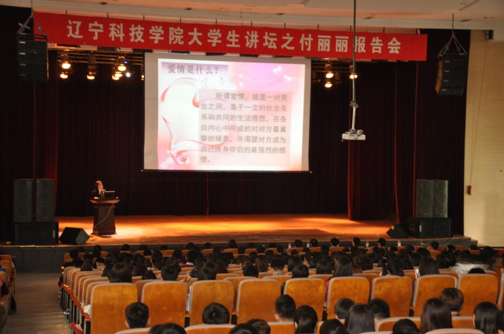 5月6日下午,辽宁科技学院大学生讲坛之付丽丽专题报告会在艺术楼大学生活动中心成功举行。我校人文艺术学院付丽丽老师做了题为《约见爱情》的精彩报告,辅导员、班主任老师,学生工作处人员和800余名学生一同听取了报告会。报告会由学生工作处副处长刘广春主持。