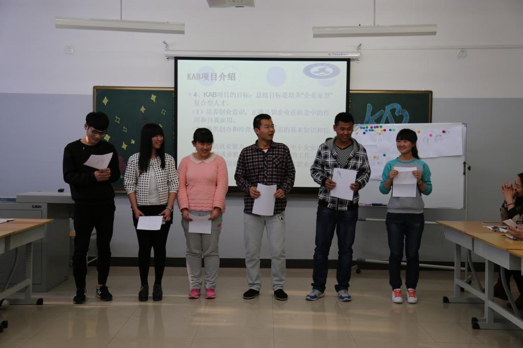 为贯彻党中央、国务院“大众创业,万众创新”的新理念,落实辽科院委发〔2015〕1号《辽宁科技学院2015年党政工作要点》,成立创业学院,培养“企业家型”复合型人才,探索我校人才培养模式改革的新路,从我校本科大一、大二,专科大一3000余名学生通过简历筛选、面试最终选拔出60名学生精英,成立阳光创业精英班,为创业学院招收首批学员,并于4月22日下午3点在艺术楼305教室开始了《大学生kab创业基础》系列课程的第一堂讲授。