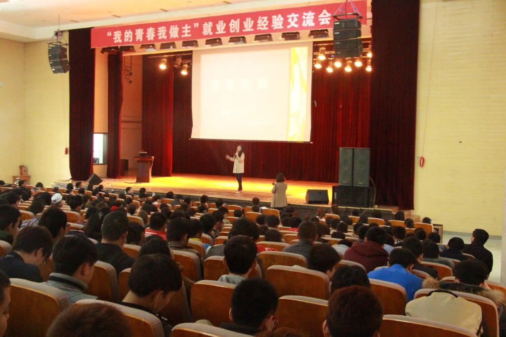 为促进我校毕业生就业创业,培育和提升大学生创业意识和创业能力,进一步鼓励和扶持大学生创新创业,3月28日学校在大学生活动中心成功举办了主题为“我的青春我做主”就业创业经验交流会。邀请到了三位“85后”的就业创业先进典型,他们是敢于创新挑战世俗的北大女孩杨鲁宁;勇往直前先就业后创业的北京乐遨网络科技有限公司ceo刘宽;追逐梦想的海归乖乖女杉合(北京)科技有限公司ceo刘芳阳。