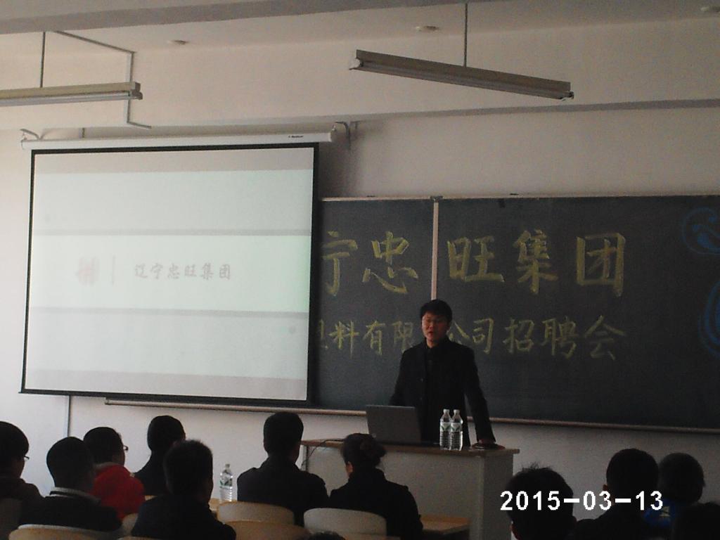 3月13日,生物医药与化学工程学院组织召开了“辽宁忠旺集团滕华塑料有限公司的专场招聘会”,这是2015年我校的第一场专场招聘会。中旺公司集团副总姜经理、人力资源部苏部长一行,药化学院领导以及75名学生参加了本次招聘会。