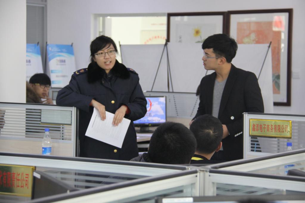 12月11上午,本溪市高新区工商行政管理局孟晓亮副局长带领相关工作人员来到我校大学生创业孵化园,现场指导大学生创业项目负责人如何进行工商注册。副校长丛树林及校团委相关工作人员亲临现场,参观大学生创业实践的第一课。