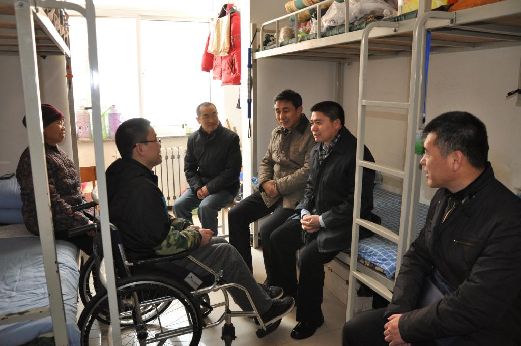 李庆才副书记一行来到学生公寓,代表政府为学生家庭送去了慰问金,并与学生及家长亲切交谈,详细了解学生在校学习、家庭生活等情况,对学生不畏艰难、自强自立的精神给予了肯定和赞扬。李书记鼓励他用坚强的意志克服困难,积极乐观地面对未来,嘱咐他放下包袱,好好学习,好好生活,经济上的困难政府和学校会全力帮助解决。桑亚伟说,“虽然刚下了雪,但这个冬天非常温暖”,他非常感谢李书记一行的关心和慰问,表示将坚定信心,刻苦学习,立志成才,勇敢面对生活,不辜负党和政府的关怀,不辜负学校和老师们的期望,将来以优异的成绩来回报学校,回报社会。