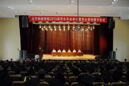 7月5日上午9:00,辽宁科技学院2013届学生毕业典礼暨学士学位授予仪式在艺术楼大学生活动中心隆重举行,庆祝2013届毕业生圆满完成学业,踏上人生新的征程。校长、党委副书记赵文珍,校党委副书记韩劲松,副校长吴国玺,副校长丛树林,纪委书记邓献宇,副校长相玉红,相关职能部门、各院系负责人,辅导员及800余名毕业生代表参加了毕业典礼。典礼仪式由副校长丛树林主持。