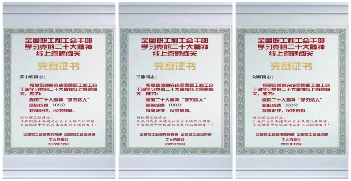 为进一步学习宣传贯彻党的二十大精神,在全校教职工中再次掀起学习热潮,以赛促学、以学促做,增强全民性和互动性,推动党的二十大精神入脑入心、走深走实。日前,由全国总工会宣传教育部、全国总工会组织部主办,工人日报社承办,我校工会组织参加的全国职工和工会干部学习党的二十大精神线上答题闯关活动圆满收官。在此次答题活动中,我校教职工积极参与,共有260人参与答题,以线上答题的形式激发学习热情。