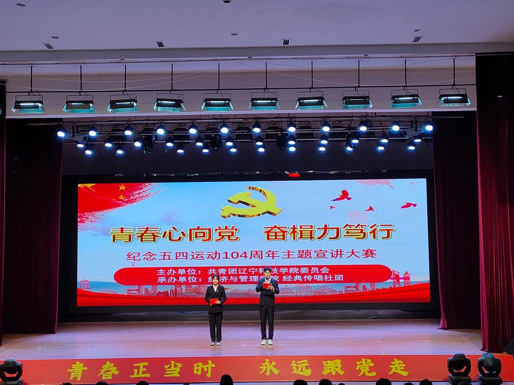 为弘扬五四精神,继承和发扬革命光荣传统,彰显时代精神和青春价值,由校团委主办、经济与管理学院经典传唱社团承办的“青春心向党,奋楫力笃行”纪念五四运动104周年主题宣讲大赛于4月27日15时在大学生活动中心举行。校团委全体老师及各学院团委书记、学生代表共同观看了大赛。
