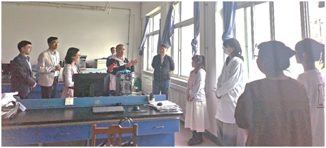 调研期间,一行六人参观了我校生物医药与化学工程学院制药工程实验室、生物技术实验室。生物医药与化学工程学院科研副院长张丹凤博士,制药工程教研室主任黄占波博士、副主任姜春风博士,生物教研室主任王振宇博士陪同。姜春风就制药工程各实验室的功能及特点、主要开展的课题研究方向及即将建设的多功能流动实验室进行了详细的讲解介绍,王振宇博士对生物实验室开展的主要研究内容及相关实验仪器设备进行了介绍。