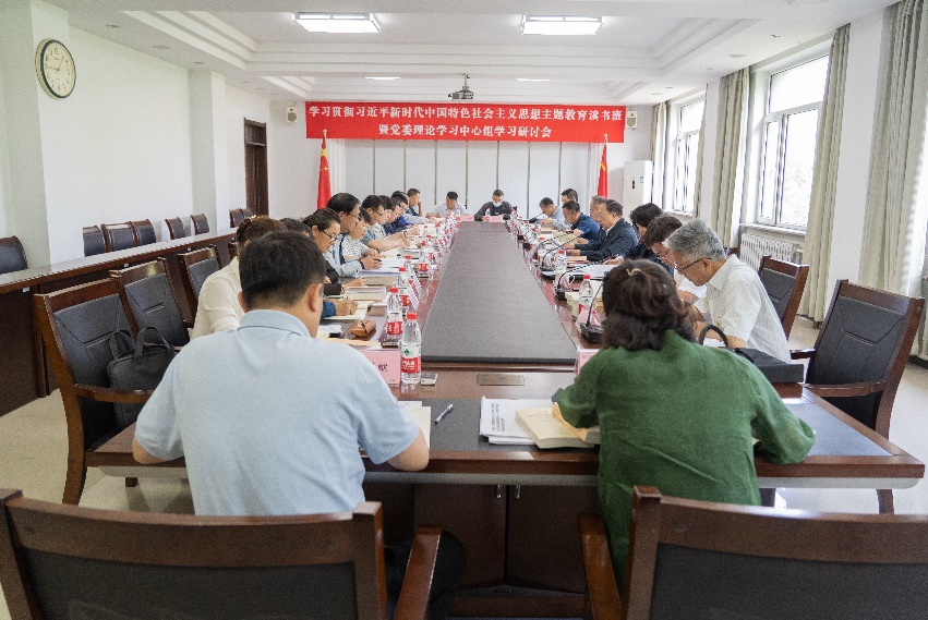 为持续推动学习贯彻习近平新时代中国特色社会主义思想主题教育走深走实、见行见效,6月2日上午,我校党委主题教育读书班暨党委理论学习中心组第九次(扩大)学习研讨会在勤公楼202会议室举行。党委理论学习中心组成员认认真真读原著学原文悟原理,重点围绕“站稳群众立场、践行为民宗旨,扎实推进共同富裕”专题进行研讨交流。