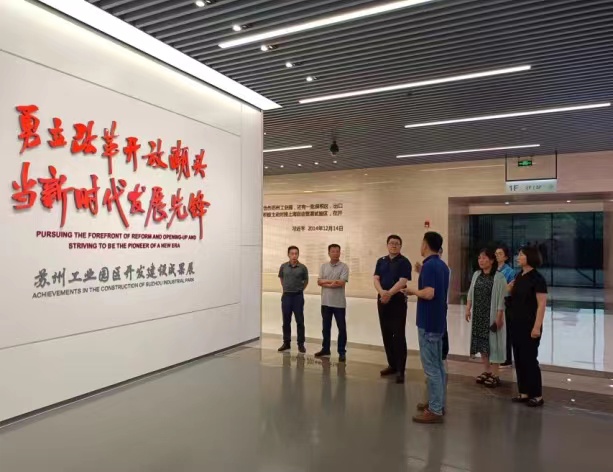 走访调研期间,一行人时刻进行主题教育学习,在苏州工业园干部队伍建设展厅,学习了干部敢为、地方敢闯、企业敢干、群众敢首创的工业园区精神。