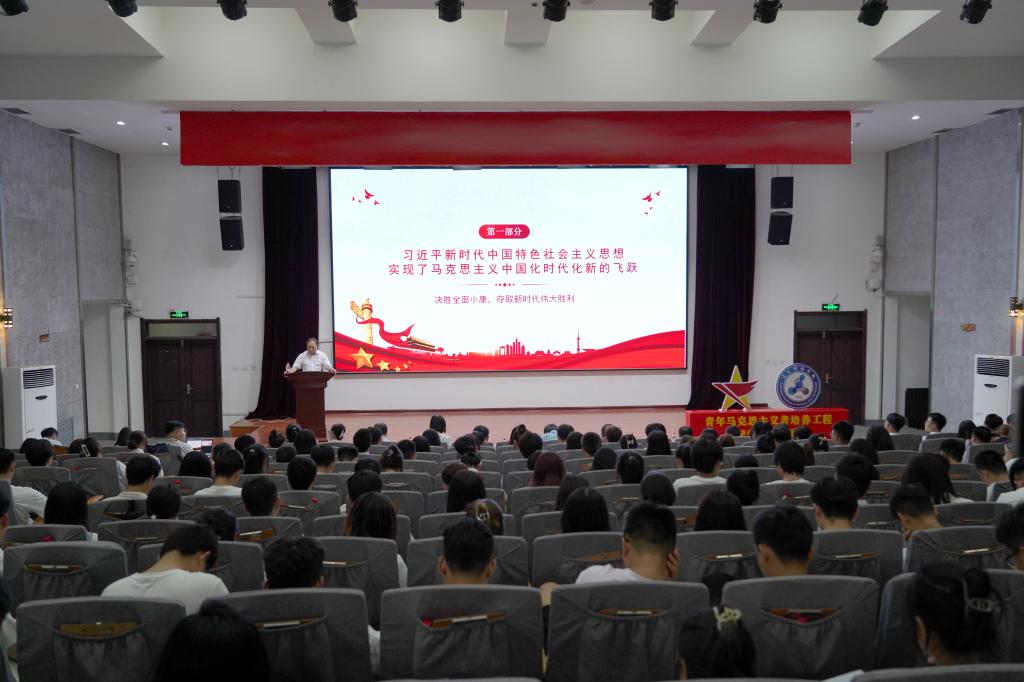 韩劲松重点讲述了习近平新时代中国特色社会主义思想,以及开展主题教育的重大意义。从习近平新时代中国特色社会主义思想实现了马克思主义中国化时代化新的飞跃,岁月横流伟人不朽,科学理论领航人生,高山仰止无愧青马,先锋分子拥抱时代等五个部分系统讲解了马克思主义中国化时代化新的飞跃。