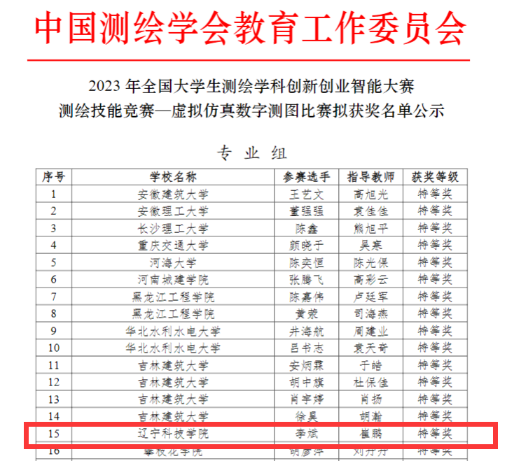 此次佳绩的取得一方面体现了辽科学子“坚韧不拔、百炼成钢”的辽科精神,另一方面体现了我校贯彻以人为本的教育教学理念,以赛促教、以赛促学,始终致力于培养适应国家经济社会发展、面向现代空间信息新技术的高素质测绘类人才。今后,学校将继续坚持应用型办学特色,在创新实践中发现人才、培育人才、凝聚人才,为广大学生追求技术进步、提升科学素养、培养团队精神提供了广阔的舞台,不断提升大学生综合应用能力、工程实践能力和创新创业意识,为辽宁全面振兴新突破提供人才支撑。