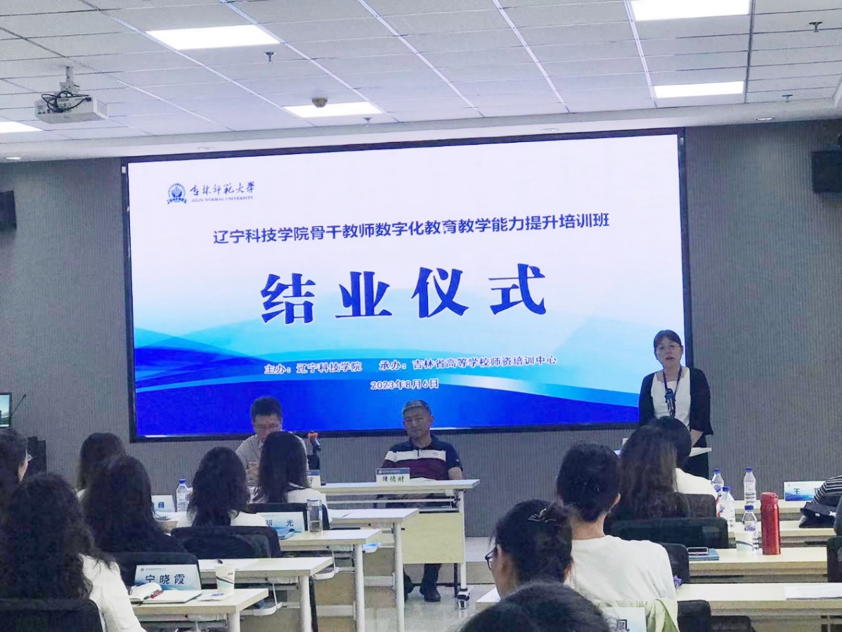 结业式上,我校人文艺术学院院长李春燕代表参培教师作了学习体会发言,认为这次培训是一次多层次、多维度、有深度、有温度的培训,教学内容丰富、课程设计合理、理念观点新颖,使参培教师收获满满。她表示,今后要以所思所获助力学校数字化建设和发展。人事处处长律德财在总结发言时感谢吉林师范大学和吉林省师资培训中心给予的高度重视、精心安排和热情服务;感谢放弃休息、积极参训、敬业奉献的参培老师。他希望参培教师学有所悟、学有所用,把本次培训收获体现到日常学习中、运用到教育教学中;希望我校与吉林师范大学两个团队沟通越来越紧密,学术交流越来越广泛深入,为培养堪当时代重任的新青年作出积极贡献。