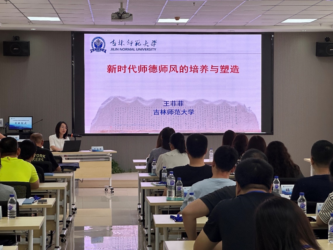 吉林师范大学副校长、教授、硕士生导师王菲菲以《新时代师德师风的塑造与培养》为主题作报告,她围绕习近平总书记关于师德师风重要论述的生成逻辑、习近平总书记关于师德师风重要论述的科学内涵、当前我国师德师风建设存在的现实问题、新时代加强师德师风建设的路径选择等四个方面详细论述了新时代师德师风如何培养和塑造,阐述了“教师的颜色决定青年一代的底色”。