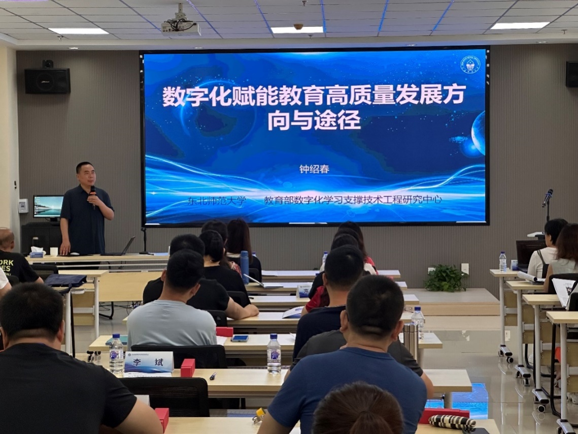 东北师范大学教授、博士生导师,教育部数字化学习支撑技术工程研究中心主任钟绍春以《数字化赋能教育高质量发展方向与途径》为主题作报告。他围绕数字化转型下教育高质量发展面临的问题和挑战、数字化转型下教育高质量发展的思路与方向、数字化转型下教育高质量发展需重点解决的问题、推动数字化转型下教育高质量发展的几点建议等4个问题讲述了数字化转型的方向和途径。