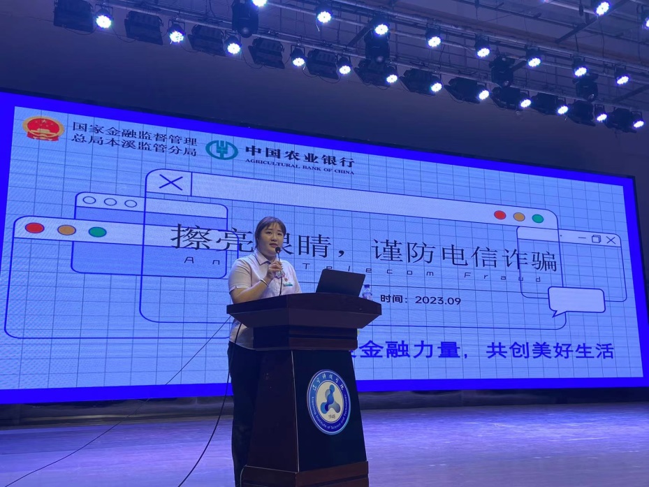 为深入学习贯彻习近平新时代中国特色社会主义思想主题教育和党的二十大精神,进一步加强防范电信网络诈骗工作,切实做好学校反电诈宣传教育,坚决遏制电信网络诈骗频发态势,9月13日下午,我校联合国家金融监督管理总局本溪监管分局和中国农业银行本溪分行在大学生活动中心举办金融知识进校园专题讲座。全校750余名学生现场聆听专题讲座。
