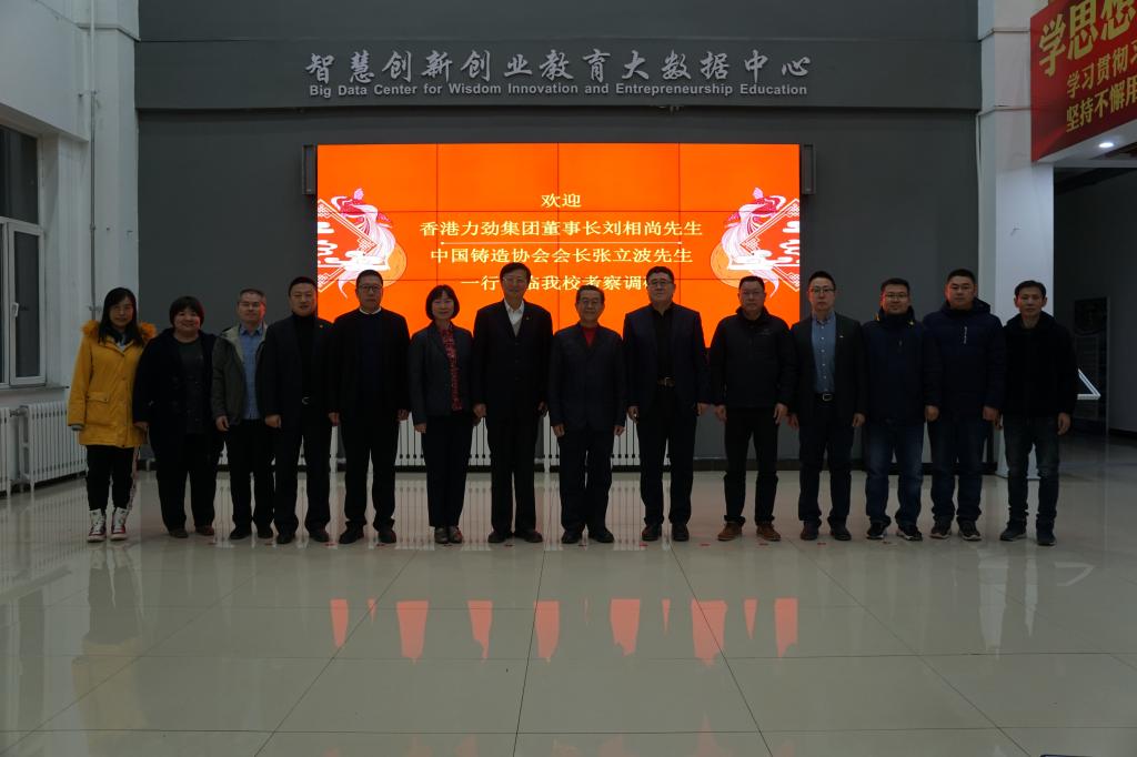 11月11日,中国铸造协会会长张立波、香港力劲集团创始人董事长刘相尚、中国铸造协会职教部副主任巩伟、阜新力达钢铁铸造有限公司董事长严纯建等一行就共建新能源汽车一体化压铸产业学院等事项到我校开展调研交流,校长李卫民,教务处处长韩延清、副处长李晓亮,冶金与材料工程学院院长孙野、金材教研室主任李贵茂及相关教师代表陪同调研。